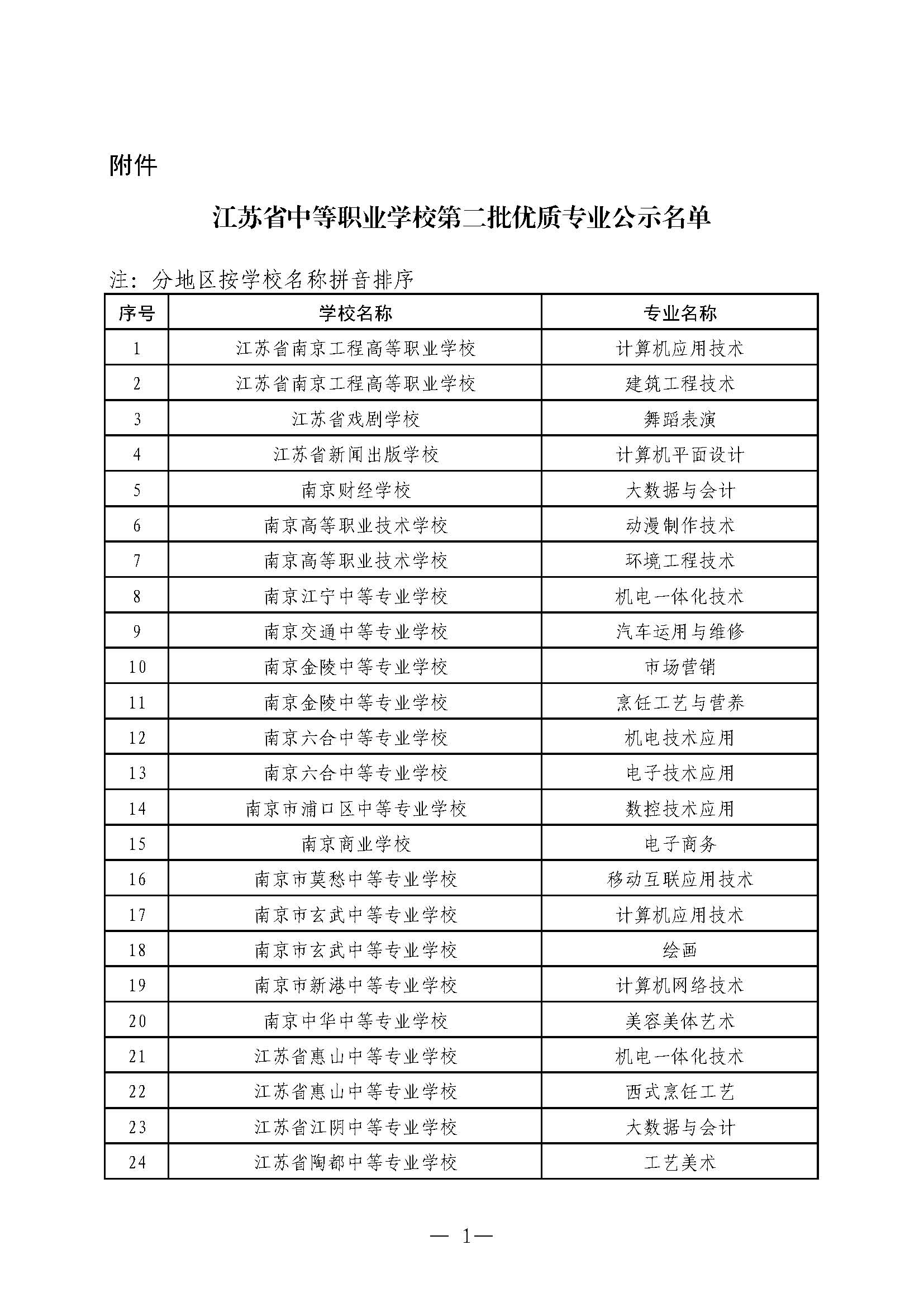 江蘇省教育廳公示江蘇省中等職業(yè)學(xué)校第二批優(yōu)質(zhì)專業(yè)遴選結(jié)果