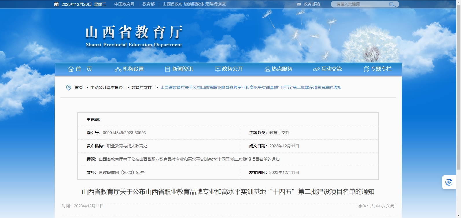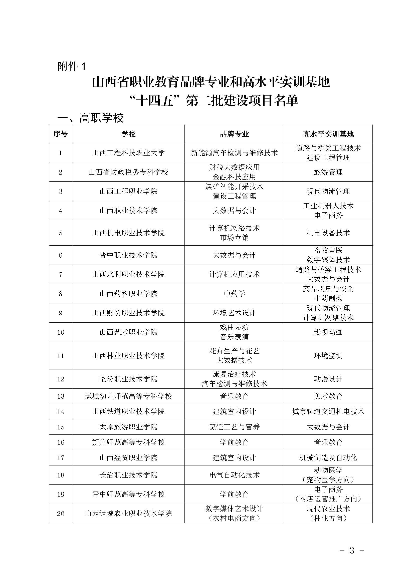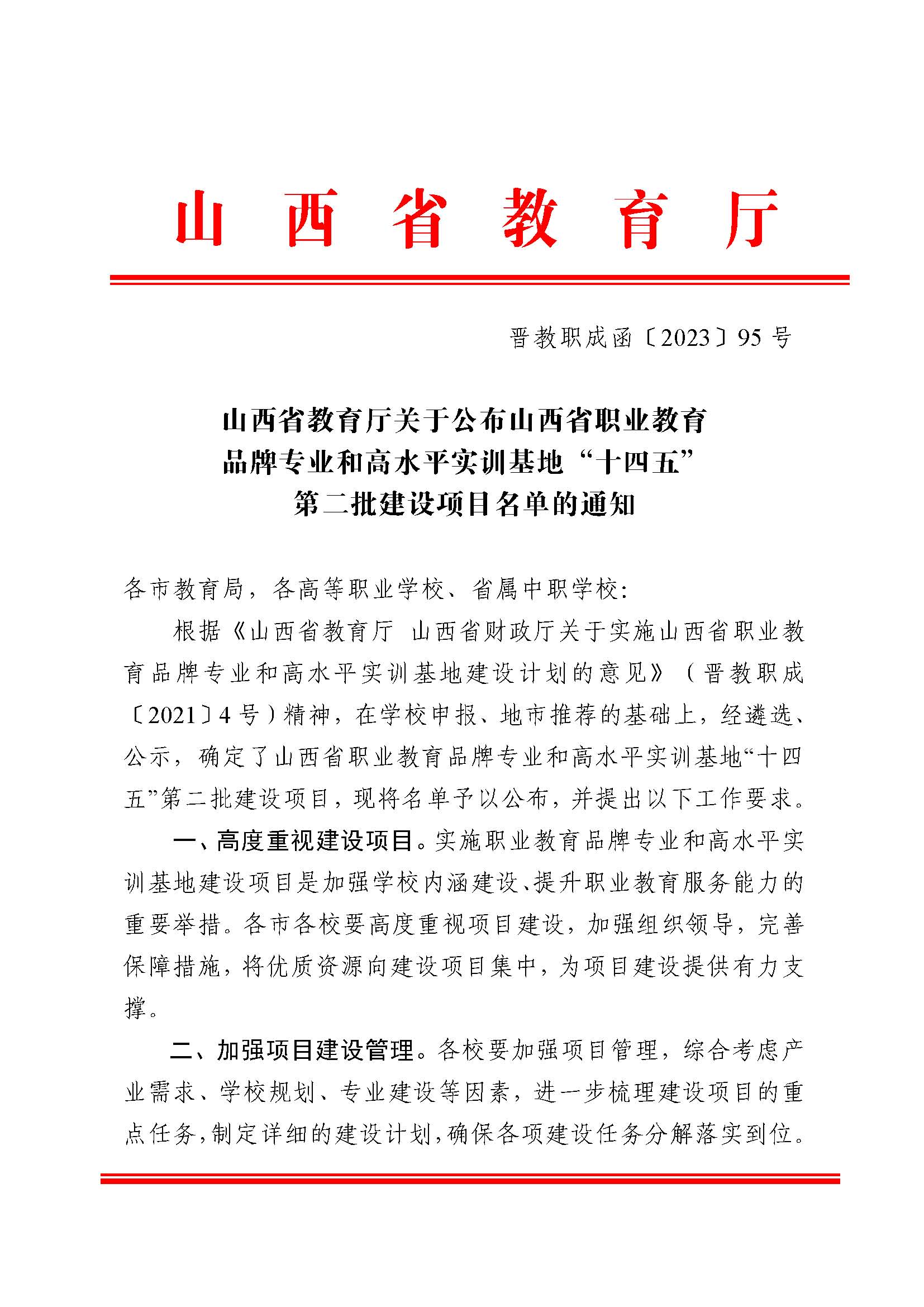 山西省教育廳關于公布山西省職業(yè)教育品牌專業(yè)和高水平實訓基地“十四五”第二批建設項目名單的通知