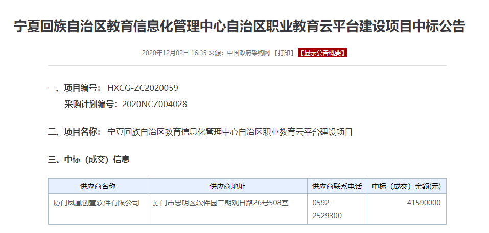 4159萬(wàn)元!鳳凰創(chuàng)壹中標(biāo)寧夏職業(yè)教育云平臺(tái)項(xiàng)目
