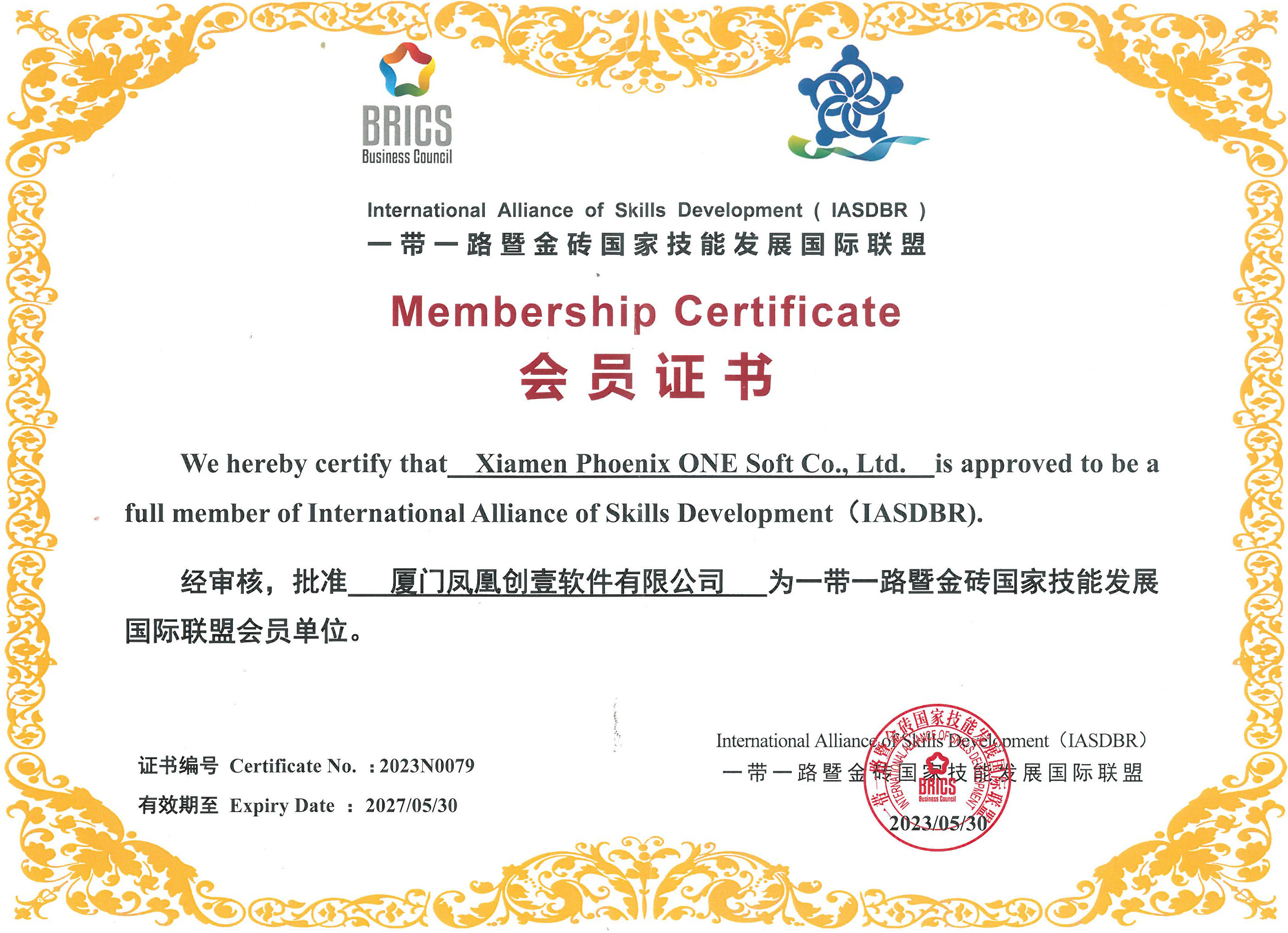喜報(bào)!鳳凰創(chuàng)壹獲頒一帶一路暨金磚國家技能發(fā)展國際聯(lián)盟成員單位證書
