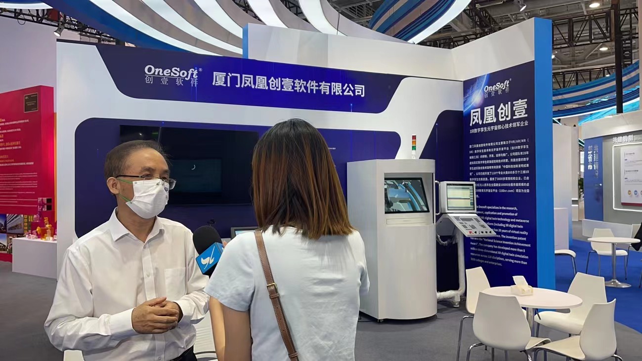 廈門鳳凰創(chuàng)壹總經(jīng)理林慶平博士:我們本次參展的是元宇宙、虛擬現(xiàn)實、數(shù)字孿生、虛實融合的產(chǎn)品,希望能夠把完全國產(chǎn)自主產(chǎn)權(quán),擁有所有源代碼的產(chǎn)品分享給所有金磚國家。